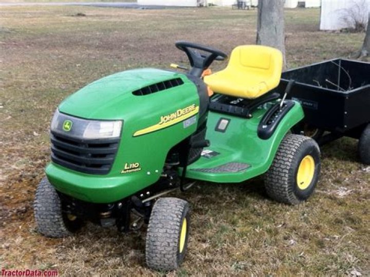 The John Deere L110 is a full-size riding lawn mower. These mowers were in production from 2002 to 2005. The L110 was designed to be more comfortable and durable than previous models. These gasoline-powered riding lawn mowers are a popular mower for people with less than three acres to mow.