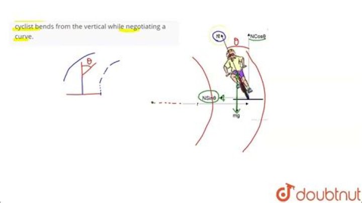 Why does a cyclist lean inwards when moving along a curved path determine the angle through which a cyclist bends from the vertical while negotiating a curve?