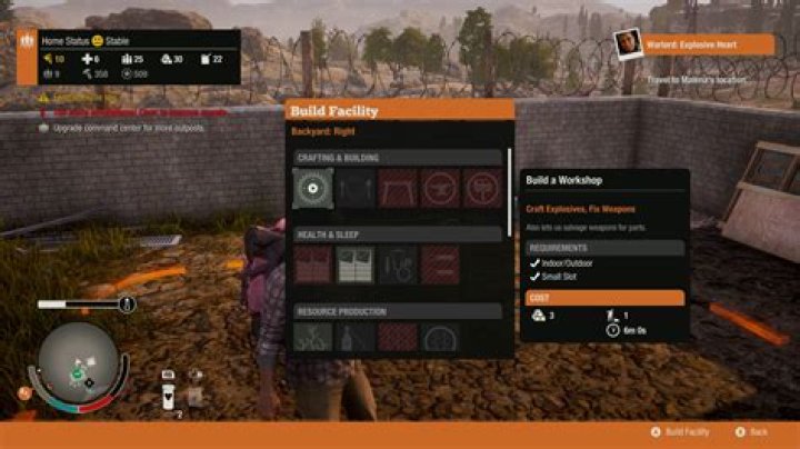 In order to repair weapons in State of Decay 2, you will need to build a Workshop at your home base. Once the Workshop is constructed, you can come here to repair any damaged weapons you may have, provided you have the resources to do so.