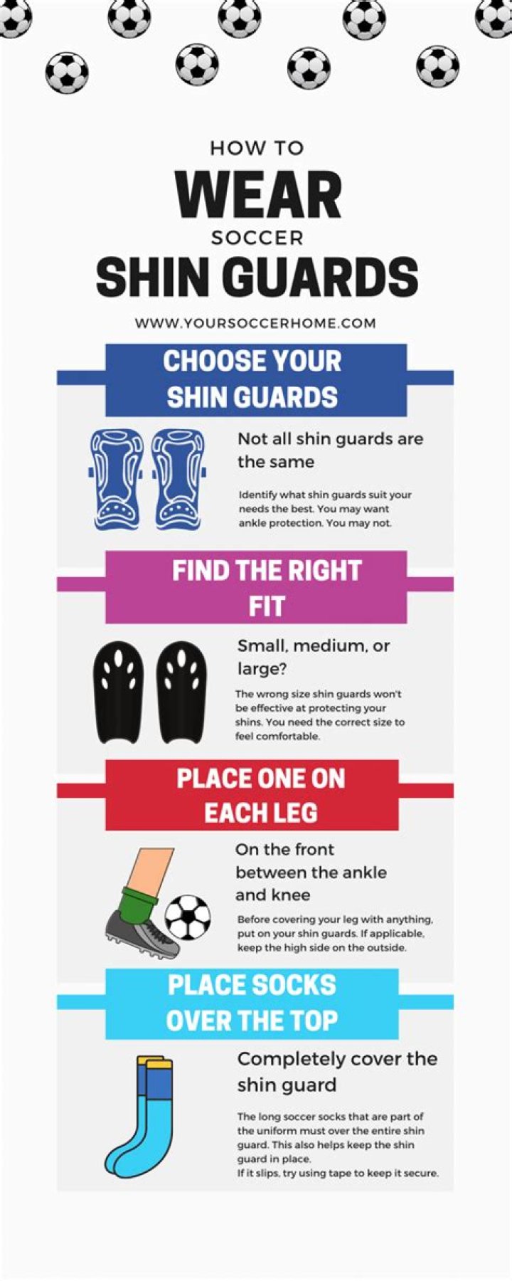 The best way to remember which shin guard goes on which leg is this: If the two shin guards are identical then it doesn’t matter which leg they go on. If one side of the shin guard is taller than the other, then place the tall side on the outside of your leg.
