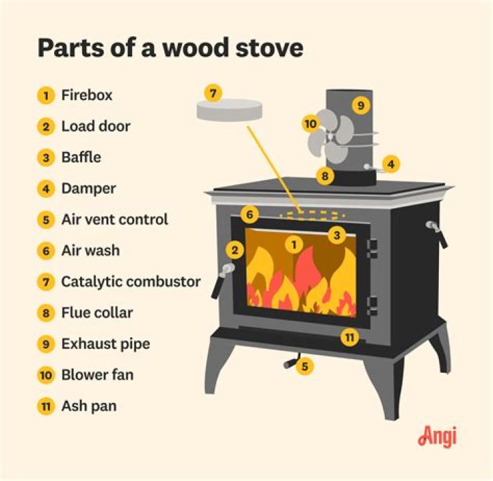 Wood-Burning Stove Components Firebox & Lining. All wood stoves have a firebox, a cavity in the stove where wood is burned to produce heat. Door & Gaskets. Wood stoves have a door that opens into the firebox so you can load the firebox with wood. Stovepipe & Chimney. Catalysts. Fireproofing.