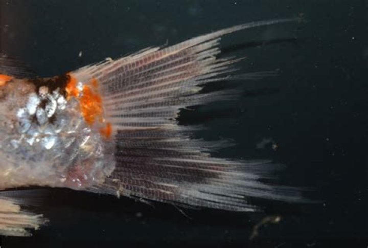 How to treat Fungus and Bacteria in aquarium fish Blood streaked fins. Frayed, tattered, ragged, split and ‘fluffy’ fins. Head and mouth regions eroded or rotting covered with white cotton wool like growths. Off white cotton-wool like tufts develop around the mouth fins and on the body.