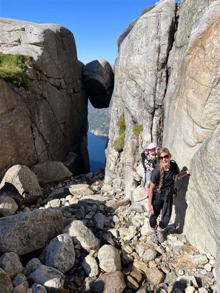 Easy to access, there are chains to help you to climb up and down. Plenty of red T mark along the route, you won’t get lost if the view is clear. be careful in the foggy time. Be careful when you step on the kjeragbolten, it is very safe to stand on it.