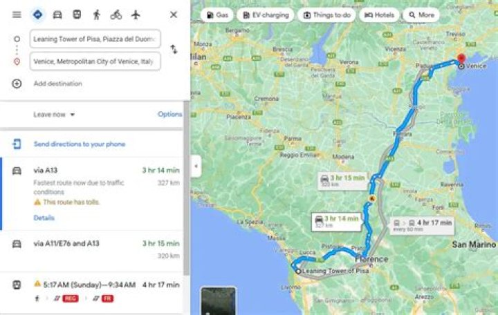 The trip takes 5 hours and 43 minutes.