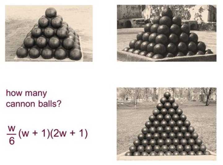 There is only one cannon ball in the top layer. All together there are 10 + 6 + 3 + 1 = 20 cannon balls.