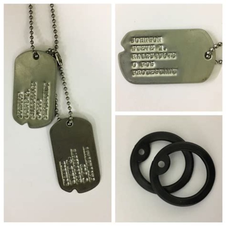 Today’s identification tags identify vital information about the wearer: name, Social Security number, blood type and religious preference. During World War II there were only three religious categories that could be put on dog tags: P for Protestant, C for Catholic and H for Hebrew (Jewish).