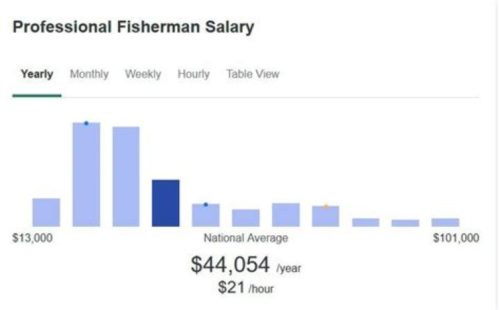 Professional Fisherman Salary Annual Salary Monthly Pay Top Earners $75,000 $6,250 75th Percentile $52,000 $4,333 Average $43,922 $3,660 25th Percentile $27,000 $2,250.
