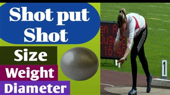 The men’s shot weighs 7.26 kg (16 pounds) and is 110–130 mm (4.3–5.1 inches) in diameter. Women put a 4-kg (8.82-pound) shot that is 95–110 mm (3.7–4.3 inches) in diameter.