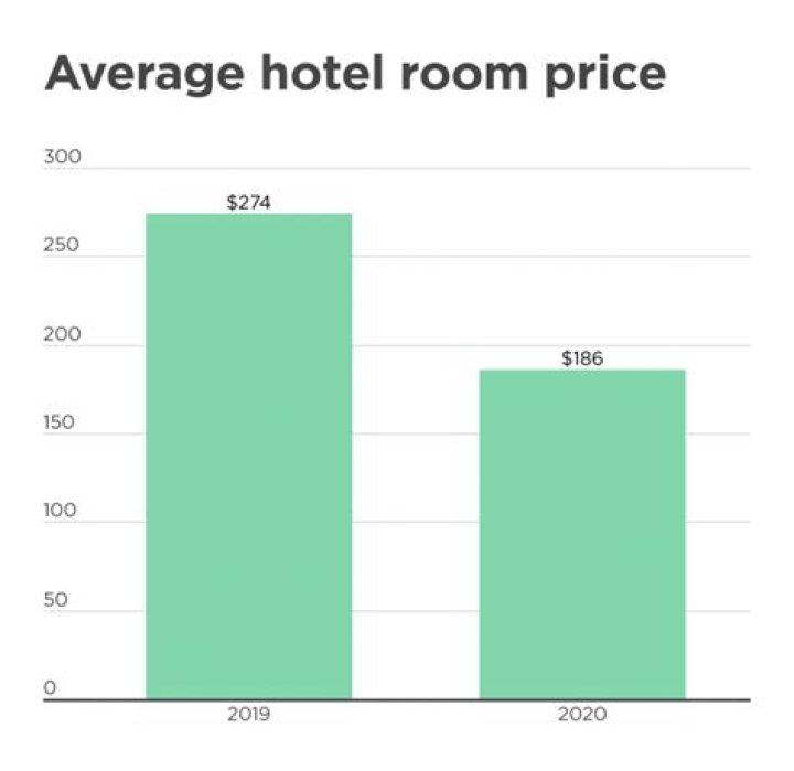 The short answer is that hotel prices have gone down significantly. Overall, we found an average price of $186 per night in 2020 compared to $274 per night at the same hotels in 2019 — a 32% drop.