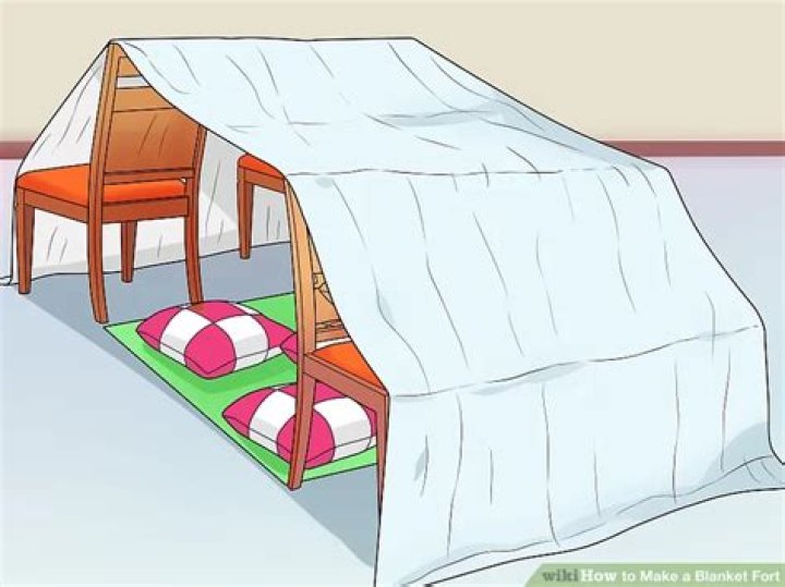 Supplies: Blankets, sheets, or quilts—and for added versatility, include a couple of fitted sheets. Pillows. Chairs. Tables, a sofa, or a bed—something as a main anchor. Clothespins or tape.