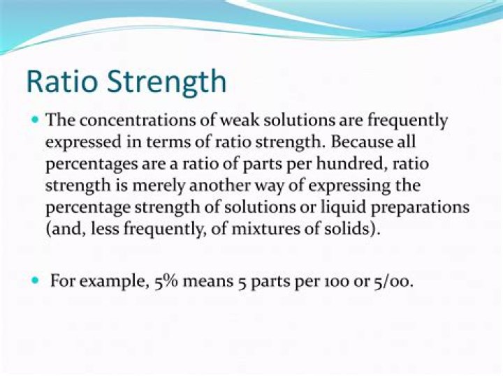 Ratio strength is one of the ways of expressing concentration and describes drug concentration in terms of a ratio. Here, concentration is defined in terms of one unit of solute contained in a total amount of solution or mixture. As a pharmacy student you should be proficient in ratio strength calculations.