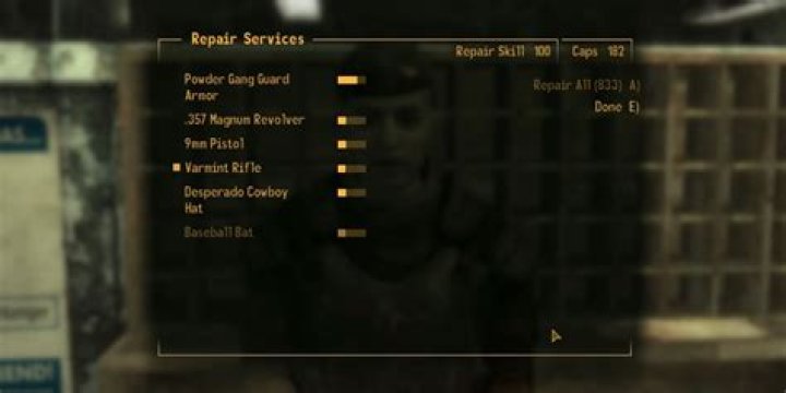Non-player characters Who Repair Name Location Repair skill Dale Barton Fortification Hill 30 Samuel Kerr 188 Trading Post 40 Calamity Jacobstown 60 Old Lady Gibson Gibson Scrap Yard 65.