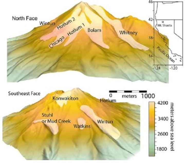 Mt. Shasta is an active volcano that has erupted at least once per 800 years for the past 10,000 years, with an increased eruption frequency of about once per 250 years over the past 750 years. The region around Mt. Shasta is susceptible to lava and pyroclastic flows, lahars (mudflows), avalanches, and earthquakes.