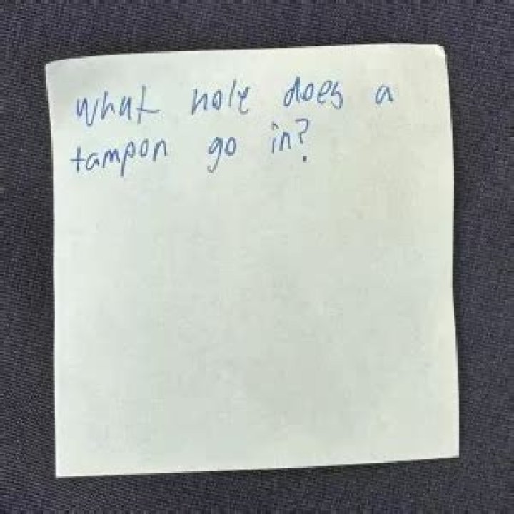 The tampon goes in the vaginal opening, located between the urethra, where pee comes out, and the anus. Using a mirror can be helpful to find exactly where the tampon goes. The vaginal opening usually looks more like an oval-shaped slit rather than a round hole.