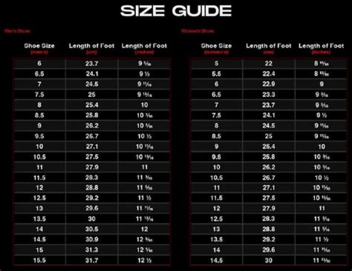 Men’s Shoes Length and Width Charts Length (inches) Length (centimeters) US Size 11 9/16″ 29.5 cm 13 11 3/4″ 30.2 cm 13.5 12 3/16″ 31 cm 14 12″ 31 cm 14.5.