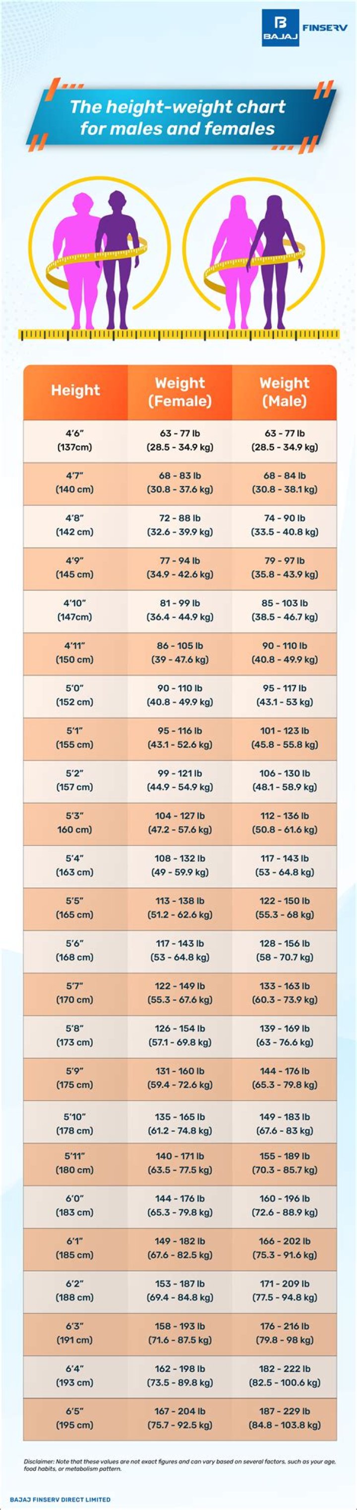 Weight and height guide chart Height Weight 5ft 2″ (62″) 104 to 131 lbs. 136 to 158 lbs. 5ft 3″ (63″) 107 to 135 lbs. 141 to 163 lbs. 5ft 4″ (64″) 110 to 140 lbs. 145 to 169 lbs. 5ft 5″ (65″) 114 to 144 lbs. 150 to 174 lbs.