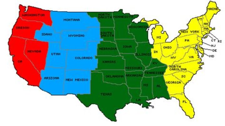 Oregon and Idaho are split between the Mountain and Pacific time zones. Nebraska, Kansas, Texas, North and South Dakota are divided between Central and Mountain time zones.