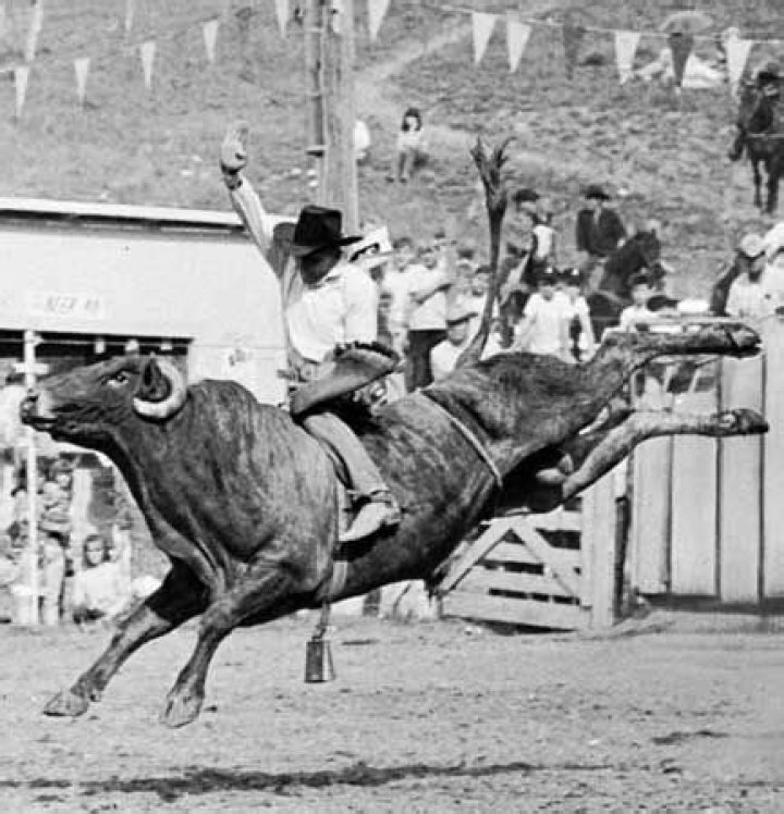 Bull riding began in the 1910s as open-arena steer riding. Not until the early 1930s, when arena chutes came into wide use, did the larger Brahman and crossbred bulls make an appearance.