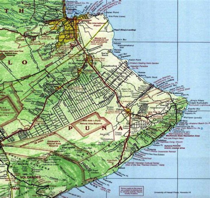 The District of Puna has 3 different lava zones and includes the towns of Kea’au, Kurtistown, Mountain View, Volcano, and Pahoa.