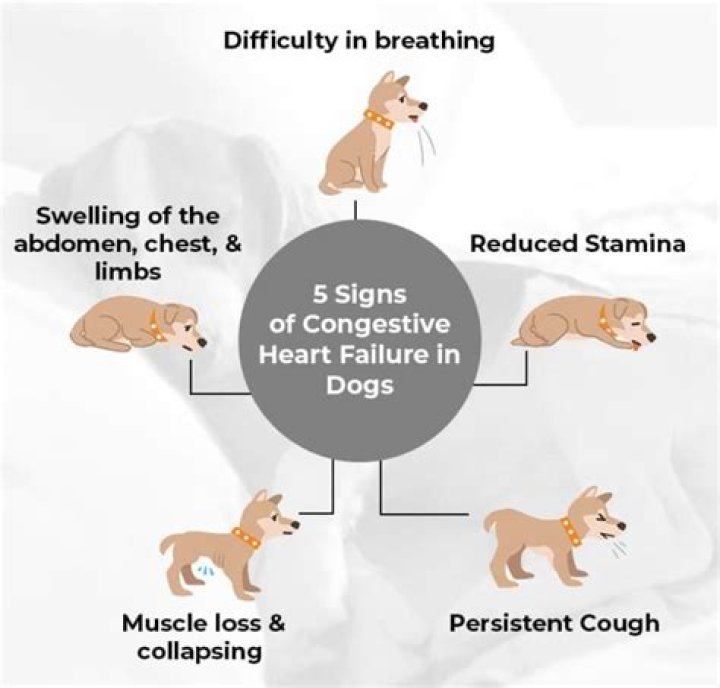 Here are some common signs that your dog might be suffering from congestive heart failure, according to Pet Health Network®: Coughing. Constant panting. Struggling to breathe. Breathing at a fast rate, especially when in a resting state. Reluctance or refusal to exercise. Getting tired more easily on walks or during play.