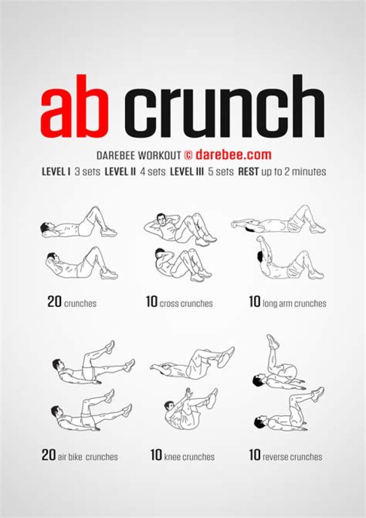 Like situps, crunches help you build muscle. But unlike situps, they work only the abdominal muscles. This intense muscle isolation makes them a popular exercise for people trying to get six-pack abs. This also makes them ideal for strengthening your core, which includes your lower back muscles and obliques.