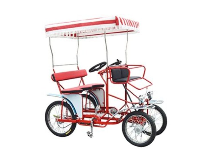 A Surrey is a four-wheeled quadricycle, two, four or six-seated pleasure carriage with an open bench seat and is powered by humans rather than a motor (although a motor can be added). A Surrey is comfortable, easy to operate and is a fun entertaining activity with a touch of exercise.