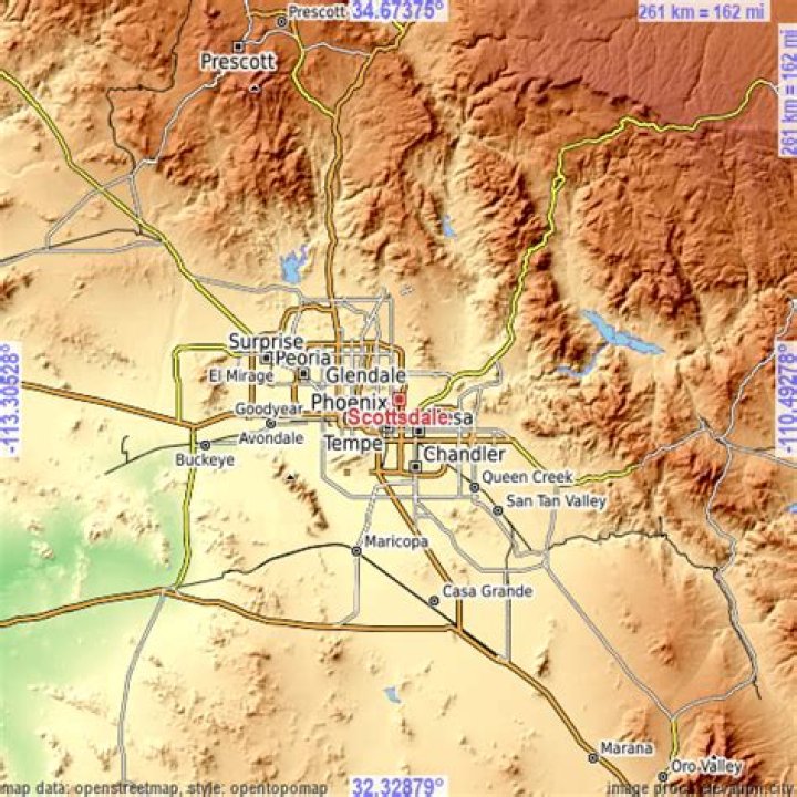 1,257 ft Scottsdale, Arizona O’odham: Vaṣai S-vaṣonĭ • Land 183.99 sq mi (476.52 km 2 ) • Water 0.46 sq mi (1.18 km 2 ) Elevation 1,257 ft (380 m) Population (2010)