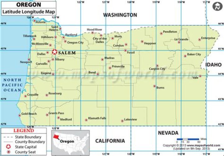Portland, Maine (43:40) is at about the same latitude as Portland, Oregon (45:30).