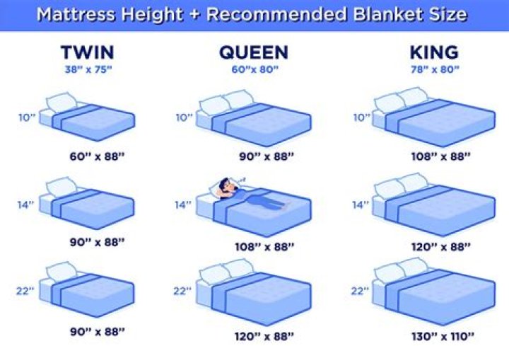 Full-size blanket, about 80 inches wide by 90 inches long; fits full-size mattress, 54 inches wide by 75 inches long. Queen-size blanket, about 90 inches wide by 100 inches long; fits queen-size mattress, 60 inches wide by 80 inches long.