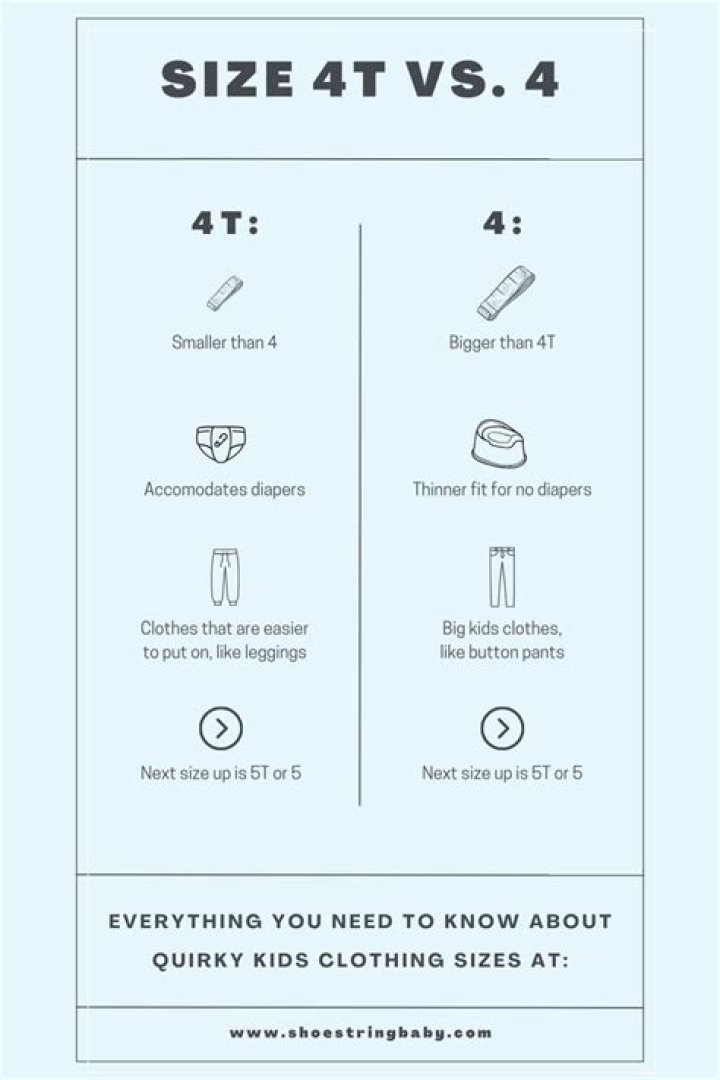 Given the fact that the 4 dimension is tailor-made for older kids, their sizes are bigger. On the other hand, the 4t sizes are smaller than size 4 because they are meant for toddlers less than twenty-four months old. Clothes with this size are shorter since toddlers below twenty-four months are short.