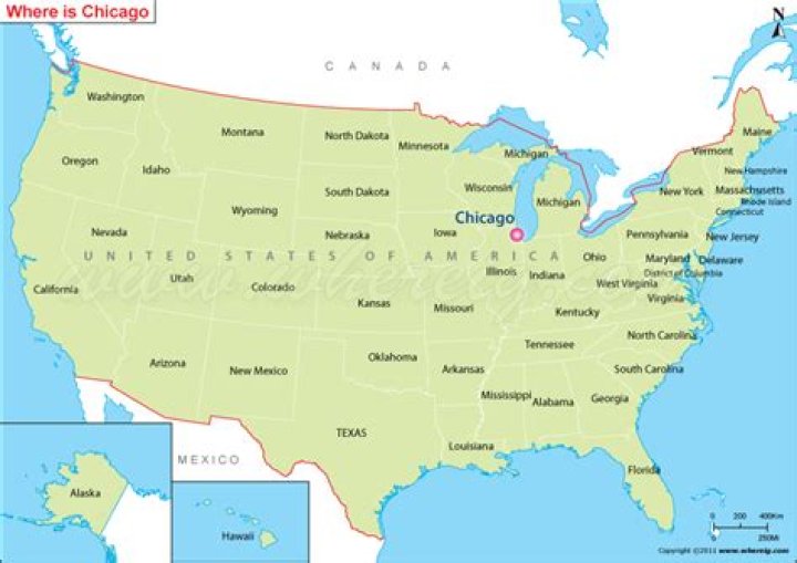 As shown in the given Chicago location map that Chicago is located in the south-eastern tip of Lake Michigan in the north of Illinois State of the United States.