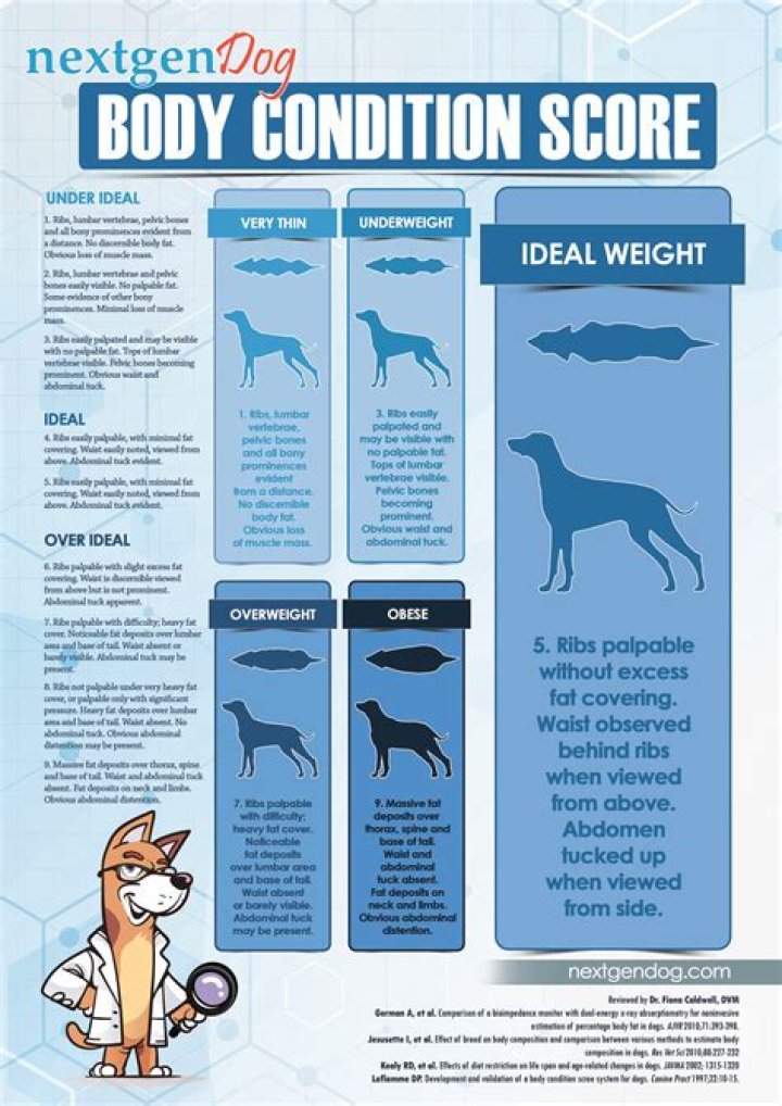 How to Tell If a Dog Is Too Skinny The ribs are clearly visible or feel like they lie just beneath the skin, with no fat layer in between. The hip bones, shoulder bones and spinal cord are easy to feel beneath the skin. The bones at the base of the tail are protruding.