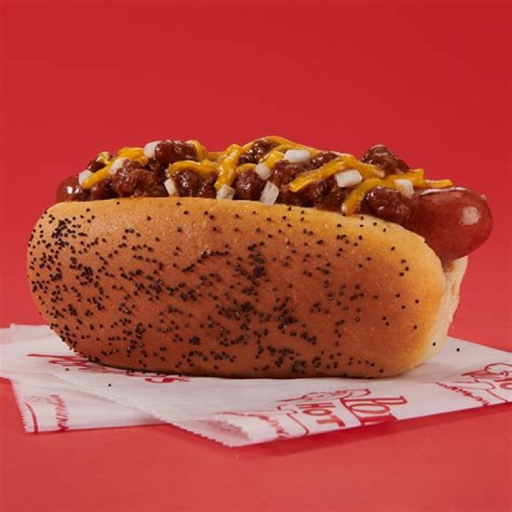Hot Dogs. A Portillo’s Chicago style hot dog is a natural skin on all beef hot dog served in a steamed poppy seed bun loaded with mustard, relish, onions, tomatoes, kosher pickle spear, sport peppers and Portillo’s own seasoning salt.