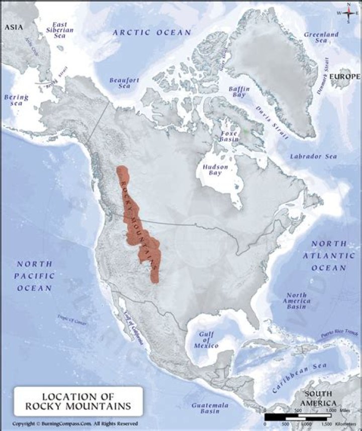 The Rocky Mountains begin in Canada and are part of what’s known as the Canadian Cordillera which includes mountain ranges located from Canada’s Prairie Provinces westward to the coast of the Pacific Ocean. Portions of the Canadian Rockies can be found in Alberta as well as British Columbia.