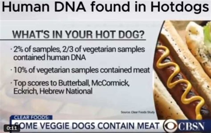 — — The food that’s a staple of American cookouts is getting some scrutiny for some unexpected ingredients. Clear Food reported that it found human DNA in six of the 345 samples, or 2 percent of all samples tested. Four of the six samples that tested positive for human DNA were vegetarian products.
