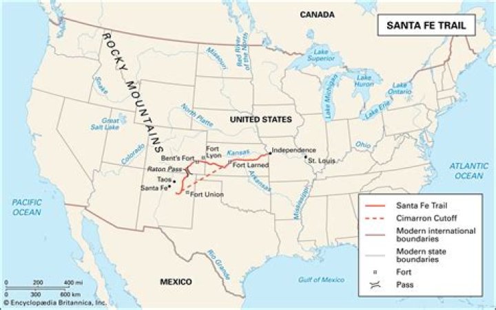 The Trail was used as the 1846 U.S. invasion route of New Mexico during the Mexican-American War. A highway route that roughly follows the trail’s path through the entire length of Kansas, the southeast corner of Colorado and northern New Mexico has been designated as the Santa Fe Trail National Scenic Byway.