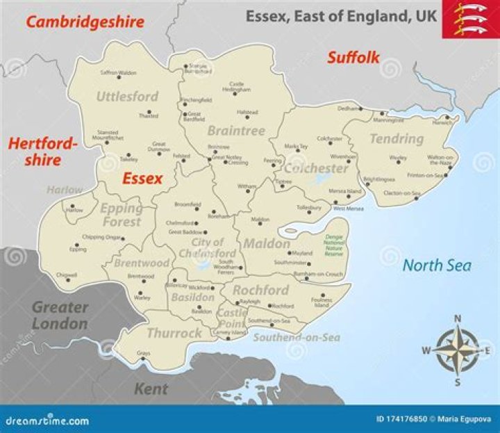 Essex (/ˈɛsɪks/) is a county in the East of England, north-east of London. One of the home counties, it borders Suffolk and Cambridgeshire to the north, Hertfordshire to the west, Kent across the estuary of the River Thames to the south and London to the south-west.