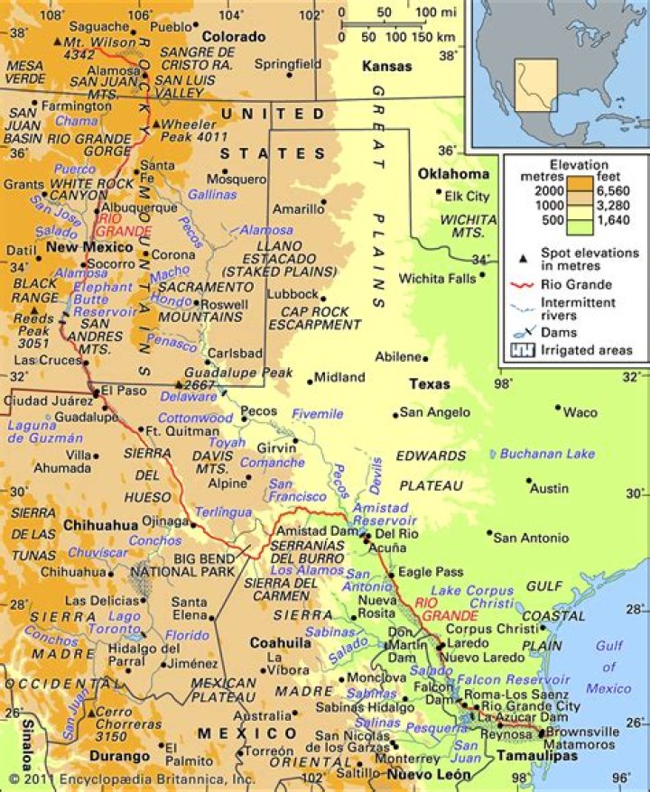 Rio Grande, Spanish Río Grande del Norte, or (in Mexico) Río Bravo, or Río Bravo del Norte, fifth longest river of North America, and the 20th longest in the world, forming the border between the U.S. state of Texas and Mexico.