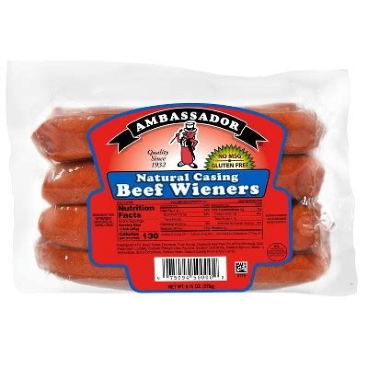Ambassador has been serving Scandinavian-style natural casing hot dogs in Minnesota since 1932. With its unique, slightly sweet flavor, these old-world hot dogs and sausages are hardwood smoked and include all natural spices, no fillers and no artificial colors or flavors.