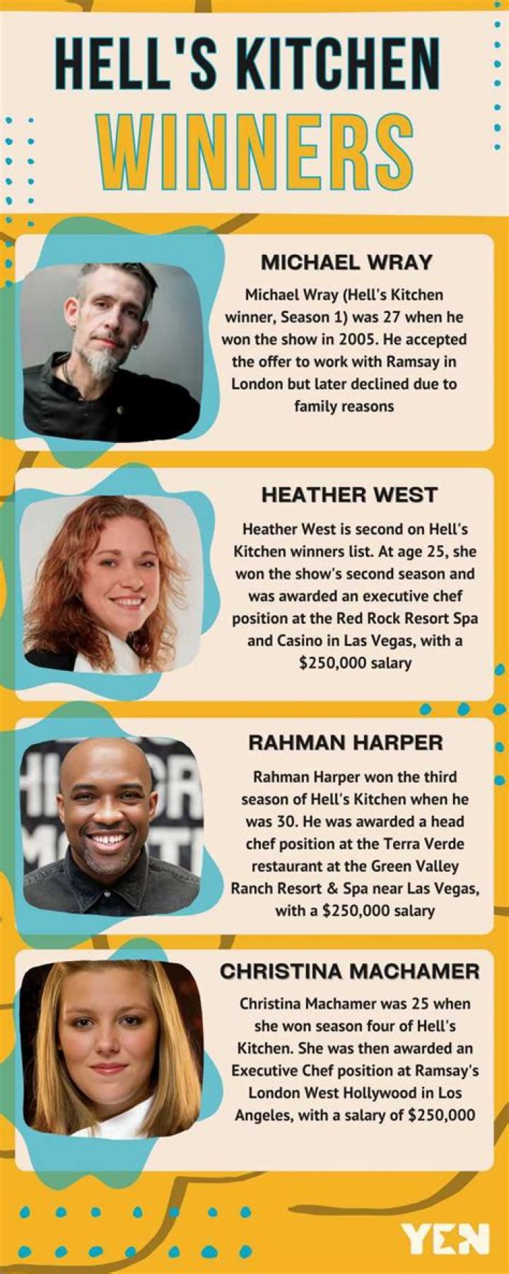 “Hell’s Kitchen” season 20 ended on September 13, 2021 and this got us wondering whatever happened to the contestants who won the first 19 seasons of “Hell Kitchen.” We did some digging and discovered that some of them are still working for Gordon Ramsay while others are now running their own restaurants or catering Sep 13, 2021.